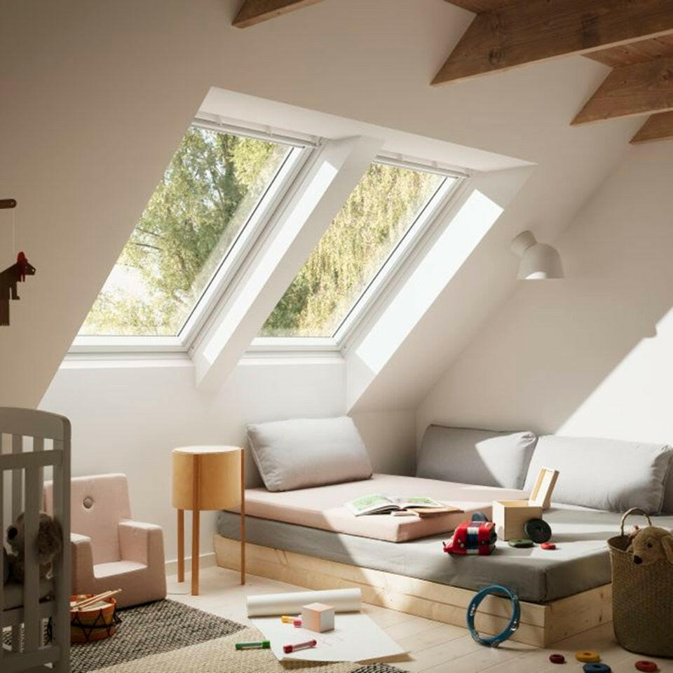 La finestra per tetti VELUX GGU è ideale per chi cerca una soluzione elegante e pratica, che non richiede manutenzione. Con la sua finitura durevole e resistente all'umidità, questa finestra completa qualsiasi ambiente ed è particolarmente adatta a spazi umidi come cucine e bagni. Progettata per la massima praticità, si adatta perfettamente a mobili come divani, piani d'appoggio o vasche da bagno.
