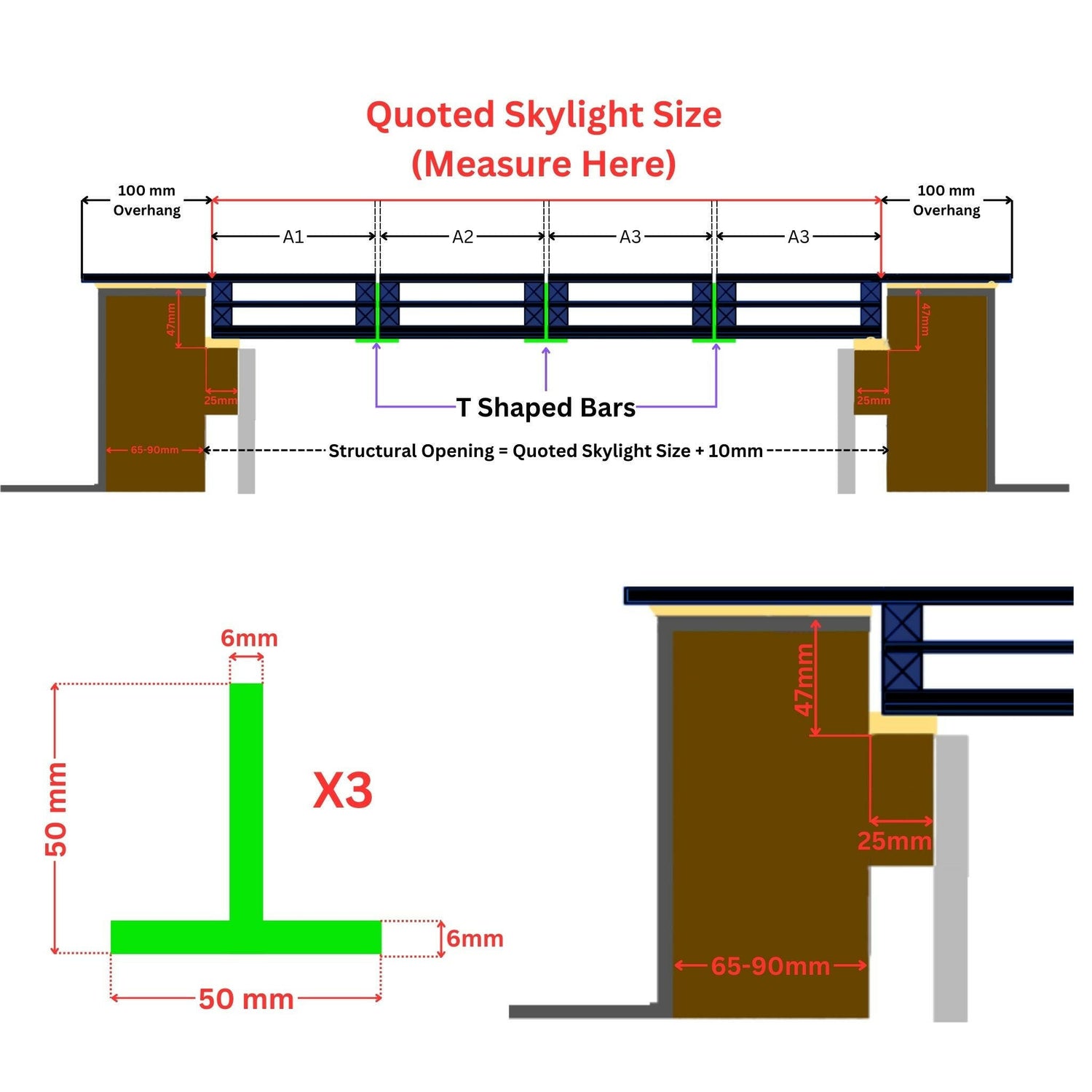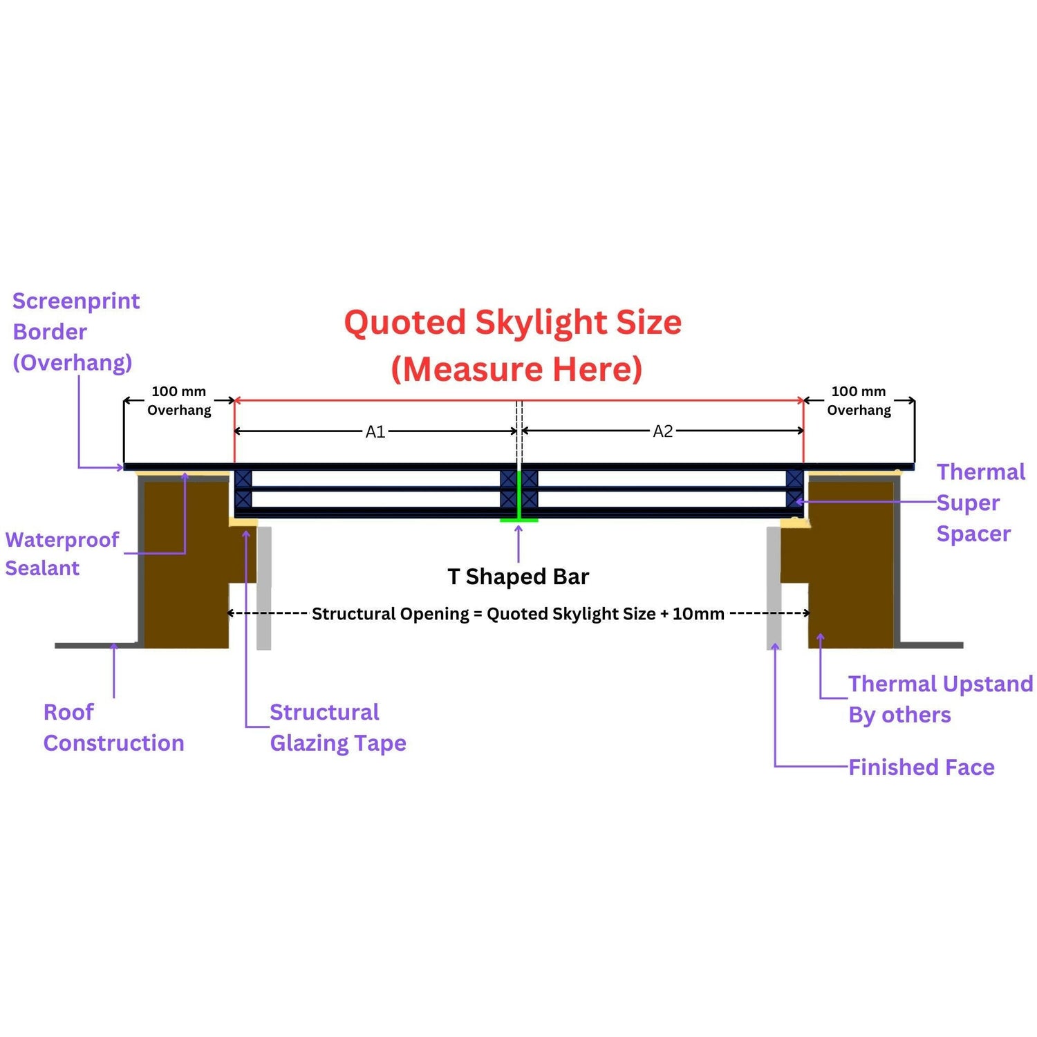 Top Layer: 6mm Toughened Safety Glass (or 8mm depending on skylight dimensions)