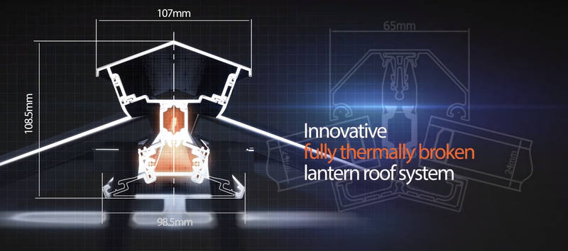 Every element of the lantern has an ultra-low conductive element between the inner and outer aluminium skin which minimises heat transfer.