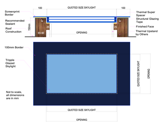 Si prega di notare che le dimensioni indicate sono le dimensioni interne dell'unità che, quando vengono misurate, devono essere prese da montante a montante più un' aggiunta di 10 mm in larghezza e lunghezza per consentire al lucernario di adattarsi liberamente all'apertura strutturale (ad esempio, un lucernario di 1000 x 2000 mm richiederebbe un'apertura strutturale di 1010 x 2010 mm da montante a montante).ad esempio, un lucernario di 1000 x 2000 mm richiederà un'apertura strutturale di 1010 x 2010 mm da montante a montante)
